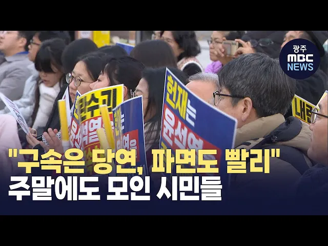 (앵커)내란 우두머리 혐의를 받는윤석열 대통령이 구속된 주말,시민들은 또다시 거리로 나왔습니다.시민들은 구속에 이어파면까지 빠르게 이어져야 한다면서도구속영장 등 대통령 수사에 계속반대 입장을 보였던 여당도 책임져야 한다고 목소리를 높였습니다.최다훈 기자입니다.(기자)윤석열 대통령이관저로 돌아가느냐,수...