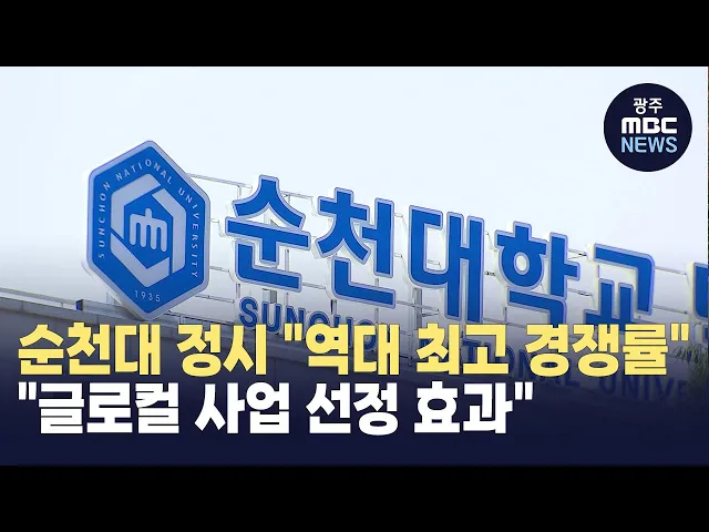 (앵커)국립순천대학교가이번 학년도 정시 모집에서 역대 가장 높은 경쟁률을 기록했습니다.학령 인구 감소 속에서도글로컬대학30 등정부의 굵직한 교육 사업에 잇달아 선정된 게 영향을 줬다는 분석입니다.유민호 기자입니다.(기자)국립순천대의 이번 신입생 정시모집 경쟁률은 5.77 대 1입니다. 호남 지역 4년제 국립대학 ...