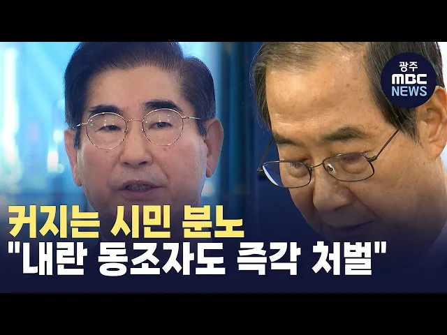 (앵커)한덕수 국무총리의 탄핵안이 국회 본회의를 통과한 가운데, 비정상적인 국정 운영에 대한 전남지역민들의 분노도 커지고 있습니다.시민단체들은 내일도 집회를 열고 윤석열 대통령 퇴진과 내란 부역자들 처벌을 촉구할 계획입니다.문형철 기자입니다. (기자)윤석열 대통령에 대한 탄핵 심판이 본격적으로 첫발을 뗐습...