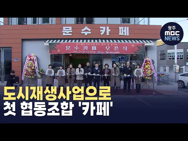 (앵커)여수에서 첫 대규모 도시재생사업으로 정비된문수지구에 주민 주도의 첫 협동조합 카페가 문을 열었습니다.주민 경제 조직의 거점으로수익과 일자리 창출을 통해경제적인 자생력을 높이는 계기가 될 것으로 기대됩니다.최우식 기자가 보도합니다.(기자)여수 문수지구에 주민 주도의 마을관리 사회적 협동조합이 운영...