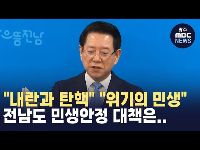 (앵커)윤석열 대통령이 탄핵되면서 전라남도가 오늘(16일) 기자간담회를 갖고 천백억 원대의 민생안정대책을 발표했습니다.또한, 통합 전남국립의대도 어려움이 부분만 부각하면 동력이 떨어질 수 있다며 "자신감과 의지"를 강조하고 나섰습니다.김 윤 기자가 보도합니다.(기자)12.3 내란사태 11일만에 국회에서 윤석열 대...