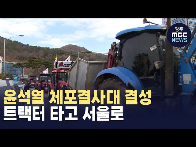 (앵커)윤석열 대통령의 즉각적인 체포와 구속을 촉구하는 목소리가 커지고 있습니다.전국 농민들은 이른바 '윤석열 체포결사대'를 결성해 트랙터를 몰고 서울까지 행진에나섰습니다.안준호 기자가 취재했습니다.(기자)논밭에 있어야 할 트랙터들이거리에 줄지어 대열을 맞춥니다."선진국 대한민국이 어떻게 이런 나라가 될 ...