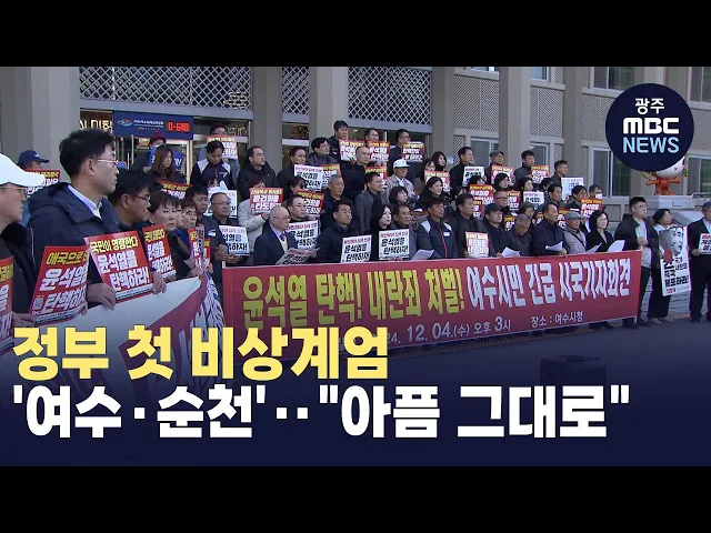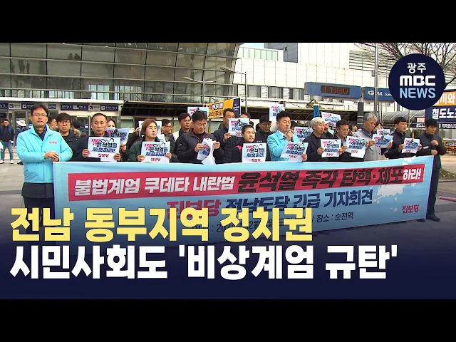 (앵커)전남 동부지역에서도 비상계엄 사태를 규탄하는 목소리가 높아지고 있습니다.76년 전 여순사건을 겪었던 전남동부지역의 시민사회단체들은대통령 탄핵과 내란죄 처벌을 위한전면적인 저항운동을 선언했습니다.최우식 기자가 보도합니다.(기자)윤석열 대통령의 비상계엄 선포와 해제를 지켜보며뜬눈으로 하룻밤을 보낸...