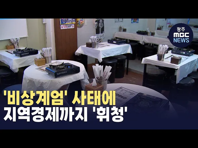 (앵커)비상계엄 사태가 시작된 이후지역 경제도 얼어붙고 있습니다.송년회로 활기를 띨 지역 상권에는 한기만 가득합니다.최황지 기자가 보도합니다.(기자)잘 차려진 식기들이 무색하게가게 안이 텅 비었습니다.송년회로 활기가 넘쳐야 할 식당에 한기만 가득합니다.답답한 사장님은 급기야 직접 호객행위에 나섭니다.* 식...