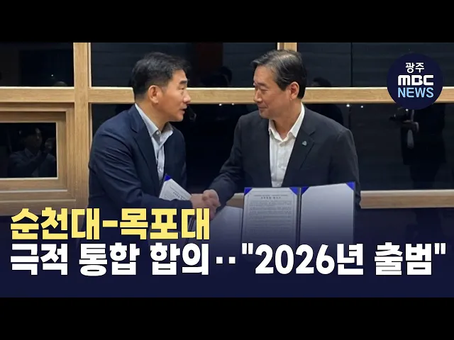 (앵커)순천대와 목포대가통합대학과 의대를 설립하기 위한합의를 끌어냈습니다.양 대학은 전남의 숙원인 의대 설립을 위해곧바로 통합 작업을 시작한 뒤,오는 2026년 개교를 목표로절차를 밟아갈 계획입니다.유민호 기자입니다.(기자)통합 합의는 전라남도가 1차 의대 공모 마감 시한으로 제시한지난 15일 저녁, 이뤄졌습니...