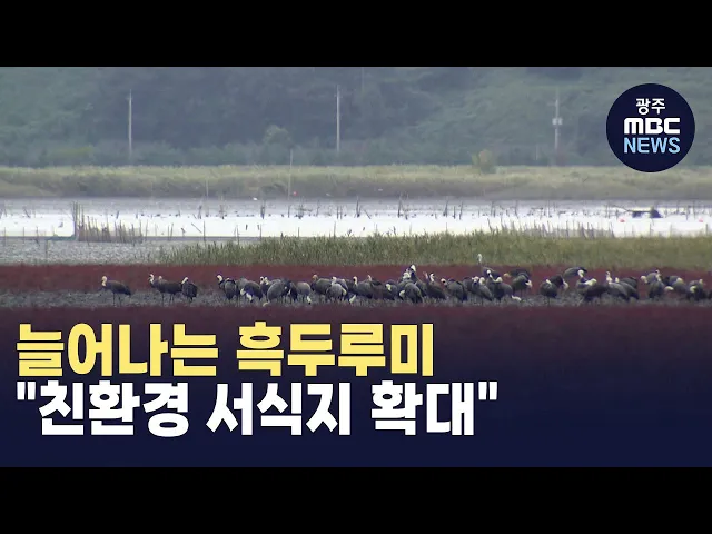 (앵커)순천만에서 월동하는 흑두루미가 매년 증가하고 있습니다.올겨울에는 8천 마리 이상이순천만을 찾을 것으로 보이는데요.순천시는 친환경 서식지를 추가로 확보하고, 시민들을 위한 탐조 프로그램도확대할 계획입니다.문형철 기자입니다. (기자)국제 멸종 위기종인 흑두루미가 칠면초 군락지에서 한가로이 먹이 활동을...