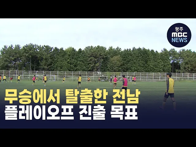 (앵커)올 시즌 K리그2 일정이 한 달 정도 남았습니다.최근 7경기 무승에 늪에 빠진 전남드래곤즈는아슬하게 플레이오프 진출권의 마지노선인 5위를 유지하고 있습니다.김단비 기자입니다.(기자)시즌 초반 상승세를 보이며선두 FC안양의 뒤를 바짝 쫓고 있던 전남드래곤즈.K리그2 2위를 기록하던 전남은7월 말 서울 이랜드 F...
