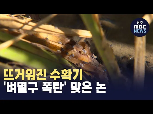 (앵커)유례없는 가을철 고온 현상에병해충 양상도 달라지고 있습니다.전남 해남과 보성 등 서해안 논에는 벼 영양분을 빨아먹는 벼멸구 개체수가 폭증하면서 농가에 비상이 걸렸습니다.서일영 기자가 현장 취재했습니다.(기자)수확을 한 달 남짓 앞둔땅끝 해남의 들녘.잘 자랐다면 황금빛을 띠기 시작해야 할 벼가 말라비틀...