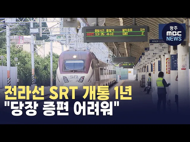 (앵커)서울 수서에서 여수까지전라선 SRT가 개통한 지곧 1년이 됩니다.하루 2차례만 열차가 다니고 있어열차 이용객 사이에서증편 요구가 커지고 있지만당장은 어렵다는게 정부 입장입니다.유민호 기자입니다.(기자)수서에서 도착한 SRT 열차.평일에도 승객이 줄지어 내립니다.SRT 전라선은 지난해 9월부터 운행을 시작했습...