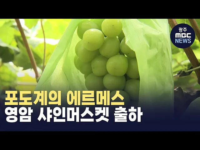 (앵커)영암에서 명품포도로 불리는 샤인머스켓 출하가 본격 시작됐습니다.올해는 붉은 빛을 내는 신품종 재배도 시도되는 등 경쟁력 강화에 박차를 가하고 있습니다.박종호 기자가 취재했습니다.(기자)달콤한 향을 머금은초록빛 포도가 주렁주렁 열렸습니다.당도가 15브릭스인 포도나 11브릭스인 망고보다최대 5브릭스 이상...