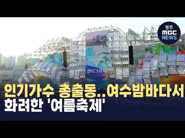 (앵커)8월의 마지막주막바지 휴가철을 맞아여수에선 뜨거운 여름 축제가 열리고 있습니다.화려한 여수밤바다를 배경으로케이팝과 트로트 공연, 야간 마라톤까지 다채로운 행사가 열립니다.최황지 기자가 소개합니다. (기자)시원한 여수의 바다를 배경으로 대형 특설무대가 설치됐습니다.더운 날씨에도 전국 각지에서 팬들이...