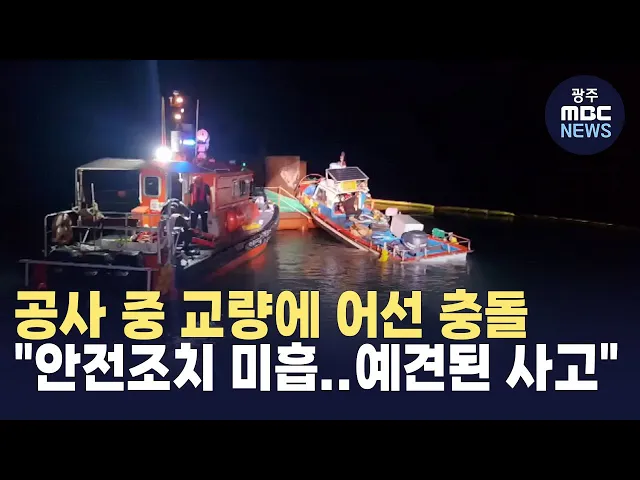 (앵커)얼마 전 목포 외달도 앞바다에서 공사 중인 교량 구조물에 어선이 충돌하면서선장이 숨졌는데요.유족과 어민들은 위험물을 알리는 불빛조차 없는 등 현장의 안전조치가 미흡해예견된 사고였다고 입을 모으고 있습니다.김규희 기자가 보도합니다.(기자)깊은 밤 교량 구조물에 배가 얹혀 있습니다.해경은 조타실에 부상...