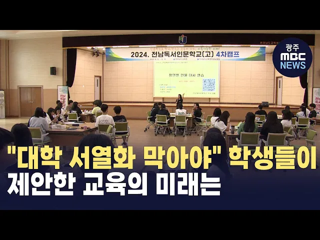 (앵커)세계로 떠나 인간의 본질에 대해 탐구했던 전남독서인문학교 학생들이 다시 모였습니다.학생들은 입시 경쟁 과열의 완화 등더 나은 교육의 미래를 스스로 고민했습니다.안준호 기자가 취재했습니다.(기자)셰익스피어의 햄릿 속 등장인물의 대사가 강당에 울려퍼집니다.* 김지유/순천여자고등학교 1학년"그러나 이제 ...