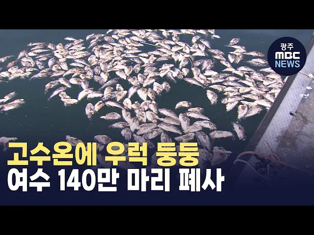 (앵커)연일 무더위가 기승을 부리면서남해안 바다도 식지 않고 있습니다.고수온 경보가 내려진 여수 앞바다에선 100만 마리가 넘는 물고기가 폐사한 것으로 나타났습니다.여기에 적조까지 발생할 수 있어앞으로가 더 걱정입니다.최황지 기자의 보도입니다.(기자)여수 가막만의 한 가두리 양식장입니다.무더위에 폐사한 우럭...