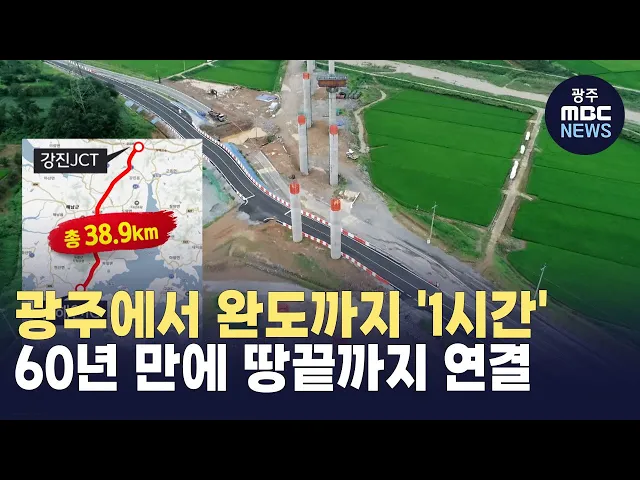 (앵커)우리나라 최초의 고속도로인 경인고속도로가 개통된 지 60여 년 만에고속도로가 땅끝 해남까지 다다르게 됐습니다.광주-완도 고속도로 2단계 사업이정부 예비타당성 조사를 통과한 건데,광주-완도 간 이동시간이 1시간까지 대폭 줄어들 전망입니다.서일영 기자가 현장 취재했습니다.(기자)완도-광주 고속도로 건설을 ...