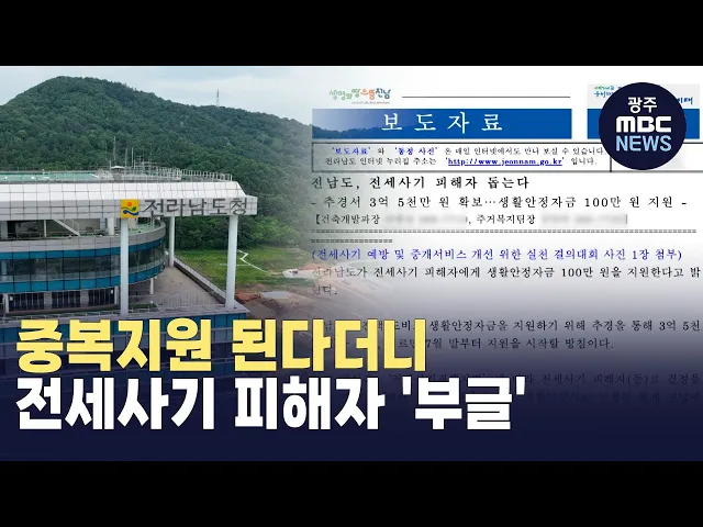 (앵커)정부와 지자체가전세사기 피해자를 위해다양한 대책을 내놓고 있습니다.전라남도도 최근 생활안정자금 100만 원을 지원하겠다고 대책을 내놨는데요.하지만, 이 생활안정자금이이미 지원을 받았던 피해자는중복해서 받을 수 없는 것으로뒤늦게 알려지면서 혼선을 빚었습니다.유민호 기자입니다. (기자)황순원 씨는 집...