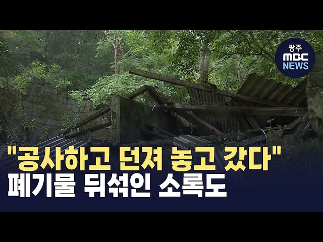 (앵커)고흥 소록도에 폐기물들이 오랜 기간 방치돼 있습니다.폐기물 중에는 발암물질인 석면이 함유된 슬레이트 지붕도 섞여 있는데요.공사하면서 발생한 폐기물을업체가 버리고 가는 것을 봤다는주민들의 목격담도 나오고 있습니다.소록도의 방치된 폐기물 실태를김단비 기자가 전해드립니다.(기자)고흥반도 남쪽 끝 녹동...