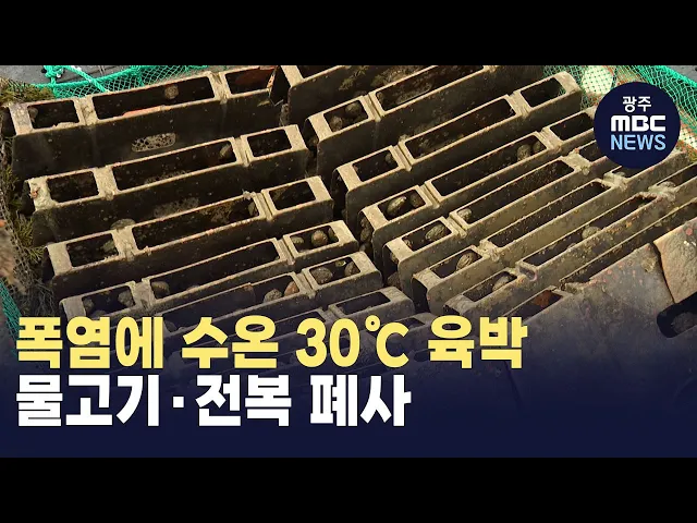 (앵커)지난달 말부터 전남지역 인근 바다에고수온 경보가 내려지면서 피해가 잇따르고 있습니다.30도에 가까운 고수온에넙치나 전복 등 어폐류가 견디지 못하고죽어나가고 있습니다.박종호 기잡니다.(기자)장흥군 관산읍의 한 넙치양식장.바닥에 가만히 있어야할 넙치들이하얀 배를 내놓고 떠다닙니다.바다 수온이 넙치 적...