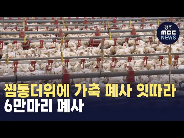 (앵커)연일 계속되는 무더위에 전남에서만 6만 마리 넘는 가축이 폐사하는 등 피해가 커지고 있습니다.농가에서는 냉방 작업이 한창이지만, 열기를 식히기에는 역부족입니다.김규희 기자가 보도합니다.(기자)닭 8만 마리를 키우는 4천 제곱미터 규모의 농장.환풍기 30여 대가 쉴 틈 없이 돌아갑니다.벽에는 물기를 머금은 ...