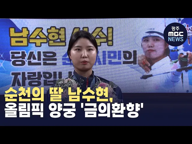 (앵커)파리올림픽에서금메달과 은메달을 따낸 양궁의 남수현 선수가오늘(6) 귀국해 고향인 순천을 찾았습니다.남 선수는 좋은 성적을 거둘 수 있었던 비결로지역민의 열띤 응원을 꼽았습니다.유민호 기자입니다.(기자)파리올림픽 양궁대표팀 막내 남수현 선수.첫 올림픽 무대에서 양궁 여자단체전 10연패의 위업을 달성했습...