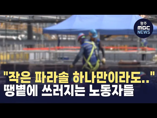(앵커)그런가하면 계속되는 폭염에 전국적으로 온열질환자가급증하고 있습니다.특히 바깥에서 일하는 옥외노동자의 경우, 무더위 시간대에도 작업을 지속하는 경우가 많아온열질환에 더욱 취약한 상황입니다.최황지 기자가 취재했습니다. (기자)여수국가산단의 한 공장 건설 현장입니다.그늘 한점 없는 꼭대기에서 철근 조...