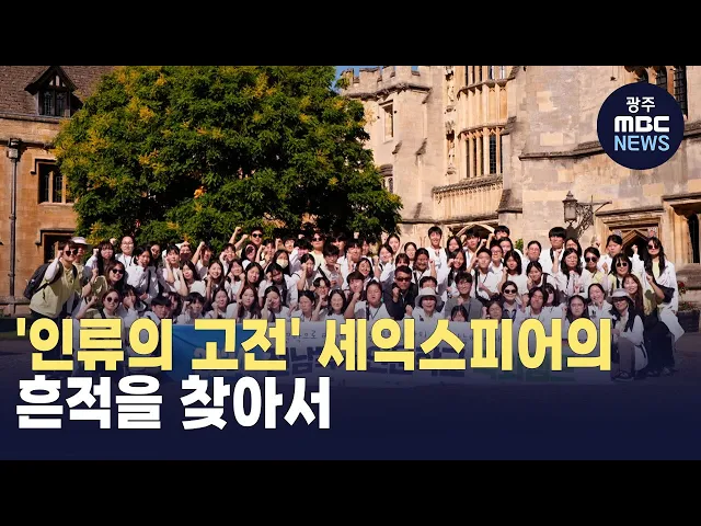 (앵커)더 넓은 세상과 가치를 배우기 위해지구 반대편으로 떠나있는 전남독서인문학교 학생들,이번에는 영국에 도착했습니다.책 속에서만 만나오던 셰익스피어의흔적을 마주한 학생들의 표정,안준호 기자가 취재했습니다.(기자)'로미오와 줄리엣', '햄릿' 등의 저자이자 16세기 영국의 시인이자 극작가 윌리엄 셰익스피어....
