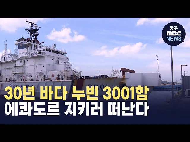(앵커)30년 동안 우리 바다를 누비고 퇴역한 해경 함정 3001함이 치안 환경이 열악한 에콰도르를 지키러 떠납니다.3천톤 급 함정 양도는 이번이 처음인데, 어제(25) 에콰도르 해군의 날을 맞아 3001함이 수리 중인 목포에서 기념행사가 열렸습니다.김규희 기자가 보도합니다.(기자)해경 함정 3001함에에콰도르 국기가 내걸...