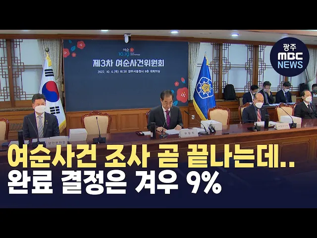 (앵커)여순사건 특별법을 근거로 시작된 여순사건 진상 조사가 오는 10월 이면 마무리 되는데요.그런데 현재 신고 접수받은 건 가운데 완료 결정된 건은 9%에 불과합니다.여순 진상 규명과 희생자 명예 회복 사업이 미완의 상태로 마무리 지어질 수 있다는 우려가 커지고 있습니다.이어서 김주희 기자가 보도합니다. (기자)...