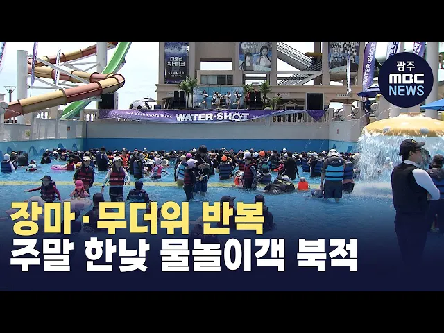 (앵커)새벽까지 물폭탄이 쏟아지다가 낮에는 찜통더위가 찾아왔습니다.오랫동안 이어진 장마에 답답함을 느낀 피서객들이 시원한 물놀이로 더위를 피했습니다.최황지 기자의 보도입니다. (기자)"쏴아"머리 위로 쏟아지는 시원한 물세례에 더위가 순식간에 날라갑니다.아찔한 워터슬라이드에눈을 질끈 감은 채 온몸을 맡겨보...