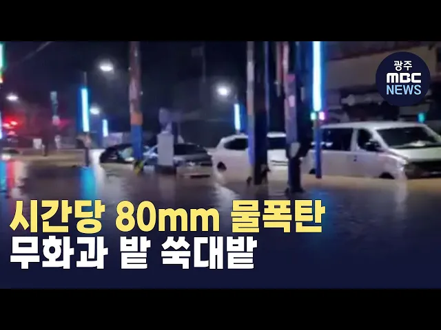 (앵커)어젯밤과 오늘 새벽 사이 전남지역에 많은 비가 내리면서 상가가 침수되는 등 피해가 잇따랐습니다.한시간에 86mm의 '물폭탄'이 쏟아진 영암 삼호읍엔 도로와 지하주차장이 잠기고, 수확을 앞둔 무화과 밭은 쑥대밭이 됐습니다.김규희 기자가 현장 다녀왔습니다. (기자)천둥 번개를 동반한 세찬 장대비가 퍼붓고도로...