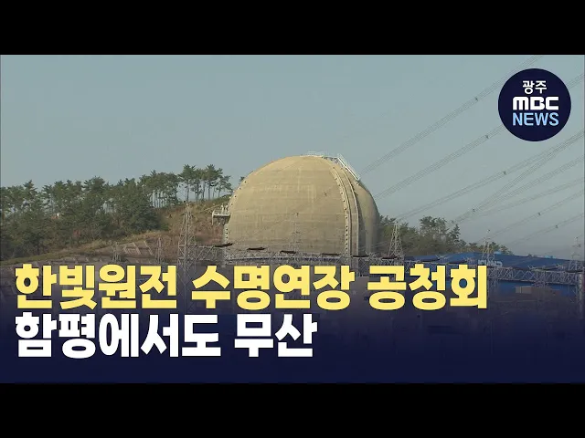 한빛원전 1*2호기 수명 연장을 위한공청회가 영광과 고창에 이어함평에서도 또다시 무산됐습니다.한수원은 오늘(19) 함평국민체육센터에서 함평 주민 의견수렴을 위한 공청회를 진행하기 위해 현장을 찾았지만 함평군의 일방적인 대관 취소 통보로 무산됐다고 밝혔습니다.이와 관련해 함평군은 주민 반대 의견 등을 수렴해 ...