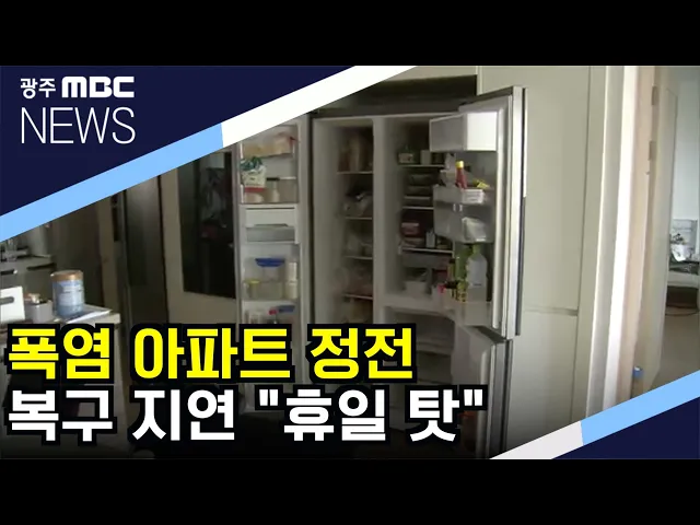 (앵커) 폭염 경보가 내려진 영암군의 한 아파트 단지에서 어제(17) 낮 정전 사고가 빚어졌습니다. 대체공휴일을 맞아, 집에 머무르고 있던 주민들이 냉방기 사용을 못해 불볕 더위 속 큰 불편을 겪었습니다. 양현승 기자가 취재했습니다. (기자 리포트) 정전 사고가 발생한 영암군의 한 아파트 단지. 식료품으로 가득한 냉...