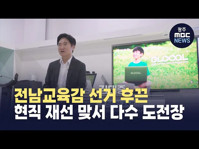 (앵커) 내년 6·3 지방선거를 앞두고 전남교육감 출마 선인이 잇따르고 있습니다.현직 교육감이 재선 의지를 밝힌 가운데 대여섯 명의 입지자들이 도전장을 던지고 벌써 현장을 누비고 있습니다.유민호 기자입니다.(기자) 전남 교육의 수장을 뽑는 내년 지방선거.8개월이나 남았지만, 일부 후보가 이미 출마를 선언하는 등 ...