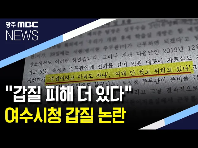 ◀ANC▶ 지난주 여수시청에서 벌어진 직장내 괴롭힘 문제 보도해 드렸는데요, 여수시는 가해자에 대한 처벌보다 발설자를 찾는데 급급했고 권오봉 시장이 가해자 징계를 막았다는 정황까지 드러났습니다. 박광수 기자입니다. ◀END▶ //여직원을 술자리로 불러내지 말아달라는 요구에 상사가 쏟아낸 입에 담기 힘든 욕설....