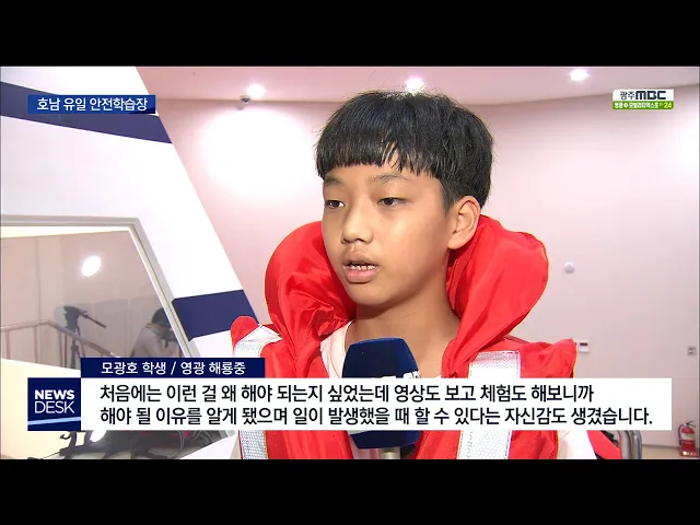 ◀ANC▶ 학생들을 대상으로 한 안전학습시설이 호남권에서는 최초로 영광에 들어섰습니다. 다시는 세월호 참사와 같은 대형 참사가 되풀이되지 않도록 각종 재난에 대처하는 능력을 키우는 게 이 시설의 핵심 목표입니다. 장용기 기자가 보도합니다. ◀END▶ 갑자기 기울어져 가는 선박에서 학생들이 구명조끼를 들고 일...