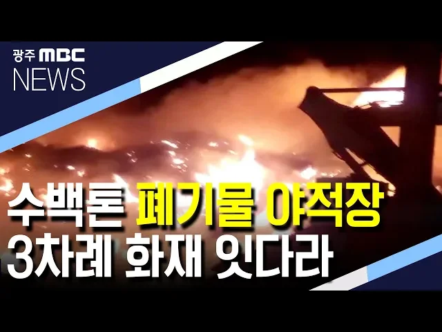 ◀ANC▶ 불법으로 폐기물을 쌓아놓은 고물상 야적장에서 최근 열흘 사이에 세 차례나 불이 났습니다. 뭔가 석연찮은 정황 때문에 경찰은 국과수에 정밀 감식을 의뢰했습니다. 김양훈 기자가 취재했습니다. ◀END▶ 검은 연기와 함께 시뻘건 화염이 치솟습니다. 영암의 한 고물상 야적장에서 불이 난 것은 지난 30일 밤 10...