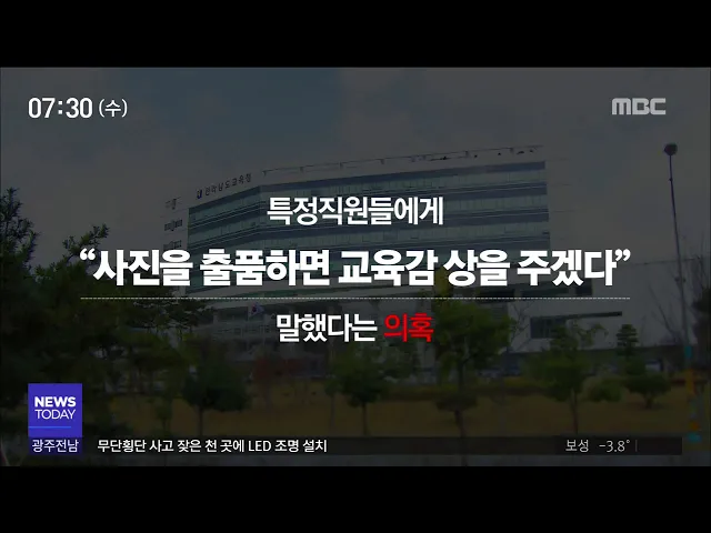 ◀ANC▶ 전라남도교육청이 교육사진 공모전을 열어놓고 시상식을 돌연 취소했습니다. 심사가 불공정하게 이뤄졌다는 의혹이 교육청 안팎에서 제기되고 있습니다. 김양훈 기자가 취재했습니다. ◀END▶ 2018 전남교육 사진공모전 당선작 전시회 출품된 300여점 가운데 당선작은 37점, 교육감 표창을 받습니다. 그런데 도교...