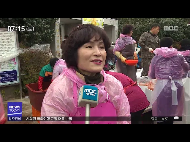 ◀ANC▶ 강진 남미륵사는 아시아 최대 크기의 청동불상으로 유명한 곳인데요. 이 절에서 오늘 4만 포기가 넘는 김장 담그기 행사가 열렸습니다. 자비의 나눔 현장을 문연철기자가 취재했습니다. ◀END▶ ◀VCR▶ 김장을 담그는 탁자들이 끝없이 펼쳐져있습니다. 손끝이 아릴 정도의 매서운 한파에도 배추에 양념을 비비...