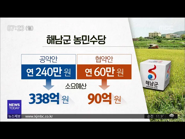 ◀ANC▶ 해남군이 내년부터 농가에 60만 원씩을 지역상품권 수당으로 지급합니다. 농가수당을 주기로 한 것은 전국에서 처음인데, 다른 부문과의 형평성 논란 등 과제도 적지 않습니다. 신광하 기자가 보도합니다. ◀VCR▶ 명현관 해남군수가 6.13 지방선거에 출마하면서 내건 농업분야 최대 공약은 농민수당 이었습니다....