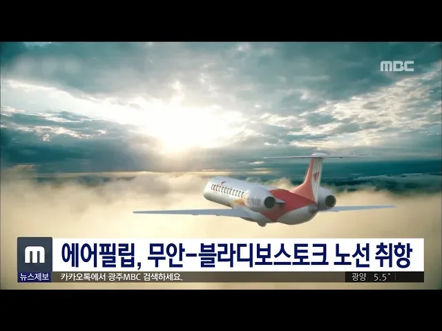 무안에서 러시아 블라디보스토크 노선 간 정기여객기 노선이 개설됐습니다. 취항식을 가진 에어필립 50인승 여객기는 어제(28일) 오후 1시 40분 무안을 출발해 러시아 블라디보스토크로 첫 비행에 나섰습니다. 무안-블라디보스토크 간 여객기는 수요일,금요일,일요일 운항하며, 걸리는 시간은 2시간 30분입니다.///