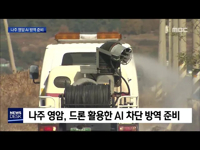 (앵커) 해마다 겨울철이 되면 조류인플루엔자로 축산농가들이 막대한 피해를 입고 있습니다. AI는 사전 차단이 중요한 데, 철새 도래지를 중심으로 한 항공방제를 위해 드론이 투입됩니다. 이계상 기자... (기자) 영산강 둔치에서 대형 드론들이 일제히 날개를 펼칩니다. 일렬로 늘어선 드론들은 저공 비행을 하며 농업용 ...