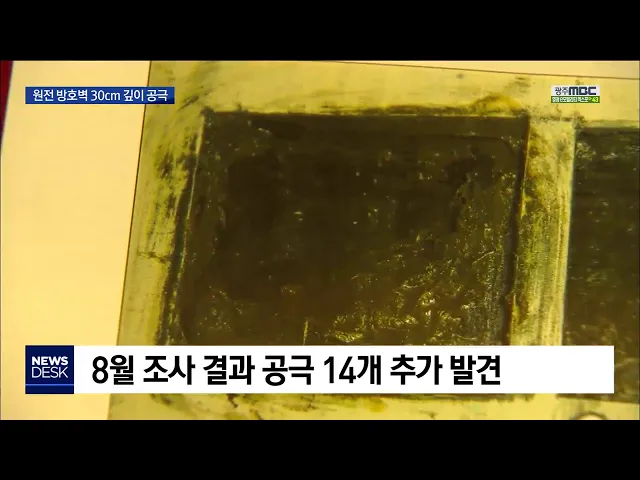 (앵커) 한빛원전 4호기는 지난해 원자로 격납건물에 크고 작은 구멍들이 발견돼 가동 중단이 길어지고 있죠. 민관합동조사단이 최근 4호기를 추가로 조사해봤는데 14개의 구멍이 또 발견됐습니다. 그 중에는 깊이가 30센티미터에 달하는 큰 것도 있습니다. 남궁 욱 기자가 보도합니다. (기자) 한빛원전 4호기는 지난해 5월...
