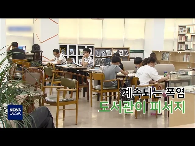 ◀ANC▶ 연일 계속되는 폭염에 도서관이 인기입니다. 책도 읽고 더위도 피할 수 있어 도서관에서 여름을 나는 이른바 '북캉스족'이 늘어나고 있다고 합니다. 박민주기자입니다. ◀END▶ 광양의 한 도서관, 밖은 한 여름이지만 도서관 안은 어린이들로 가득 찼습니다. 인형은 등받이가 되고 동굴같은 책방은 재미있는 공간...