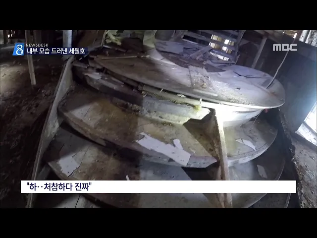◀ANC▶ 4년여 만에 바로 선 세월호의 왼쪽 선체는 곳곳이 찢기고 부식돼 상처 투성이었습니다. 눈에 띄는 대형 충돌의 흔적은 없었지만, 설명할 수 없는 자국들도 확인돼 치밀한 조사가 필요해 보입니다. 김진선 기자가 살펴봤습니다. ◀END▶ ◀VCR▶ 바로 선 세월호 선수 갑판을 두르고 있는 울타리가 끊겨있습니다. ...
