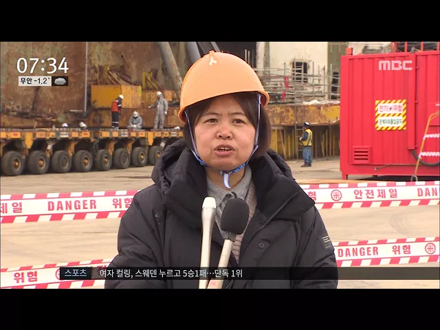 ◀ANC▶ 목포신항에 10개월 넘게 옆으로 누워 있는 세월호를 바로 세우는 '직립작업'이 본격적으로 시작됐습니다. 세월호 사고 원인 규명과 미수습자 수색도 재개될 것으로 보입니다. 김양훈 기자가 취재했습니다. ◀END▶ 세월호 선체 하부를 받치고 있는 수평빔 아래로 모듈 트랜스포터가 들어갑니다. 선수 왼쪽 아래로...