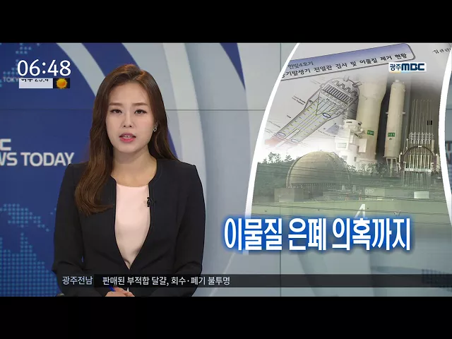 (앵커) 격납건물 내부 철판 부식과 콘크리트 구멍이 발견 돼 부실시공 논란을 빚고 있는 한빛 원전 4호기에서 또 다시 문제가 드러났습니다. 3대 핵심 설비 중 하나인 중기발생기에서 30여개의 이물질이 발견됐는데 이 가운데에는 크기가 10cm가 넘는 것도 발견됐습니다. 원전 안전이 또다시 도마위에 올랐습니다. 송정근 ...