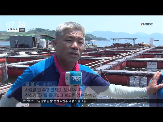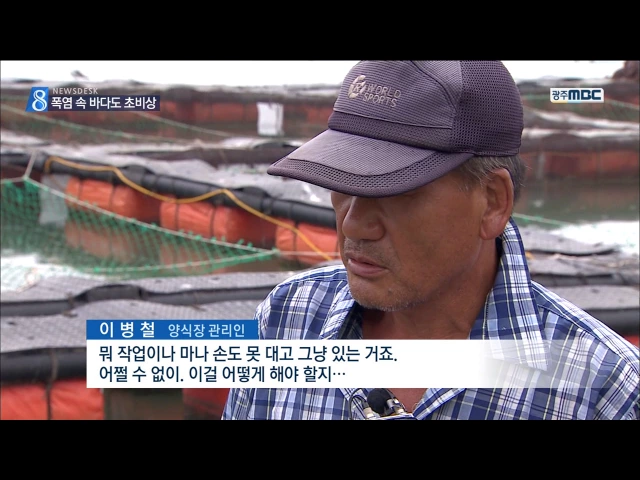 ◀ANC▶ 기록적인 폭염의 영향으로 여수와 고흥 해역에 '고수온 주의보'가 내려졌습니다. 앞으로 수온이 더 올라갈 가능성이 커 양식 어가와 지자체가 바짝 긴장하고 있습니다. 보도에 문형철 기자입니다. ◀VCR▶ 여수 소경도 인근에 있는 가두리 양식장입니다. 이곳의 수온은 28.7도. 평년보다 2.5도 높습니다. 가두리 ...