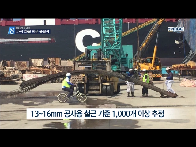 ◀ANC▶ 세월호 화물칸에서 건설현장에서 사용하는 철근이 다량 발견됐습니다. '과적' 상태였던 세월호에는 제주해군기지 건설을 위해 많은 양의 철근이 선적됐다는 의혹이 제기된 상태여서 관심이 쏠리고 있습니다. 김진선 기자입니다. ◀END▶ ◀VCR▶ 세월호 화물칸에서 12미터 길이 공사용 철근 뭉치가 꺼내집니다....