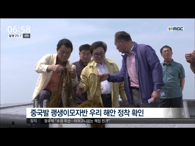 ◀ANC▶ 해마다 중국에서 밀려오는 바다의 불청객 '괭생이모자반' 때문에 골치를 앓고 있습니다. 그런데 떠밀려왔던 중국발 '괭생이모자반'이 이미 우리 해안에 정착하고 있는 것으로 확인돼 비상이 걸렸습니다. 박영훈 기자가 현장 취재 ◀END▶ ◀VCR▶ 해남의 송호리 앞바다입니다. 양식장마다 4,5미터 길이의 해조류...