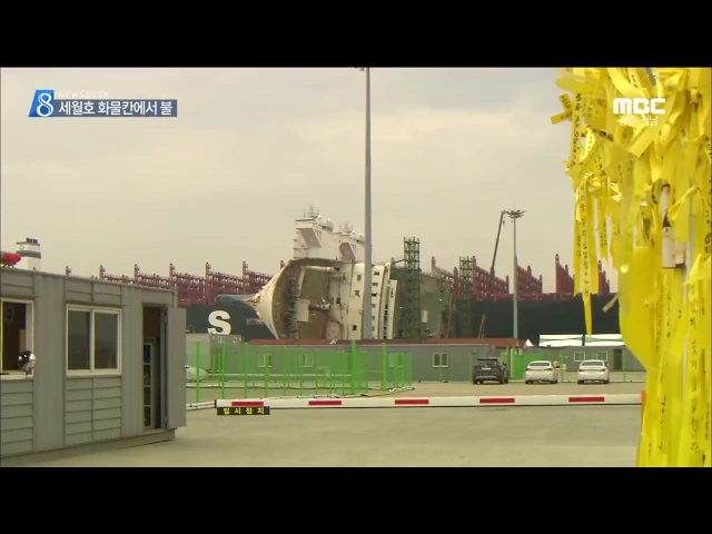 ◀ANC▶ 본격적인 수색을 앞두고 준비작업이 한창인 세월호 선체 화물칸에서 오늘 화재가 발생했습니다. 다행히 인명피해는 없는 것으로 파악되고 있습니다. 김진선 기자가 취재했습니다. ◀END▶ 세월호 수색 현장에서 화재가 발생했습니다. 오늘 오후 5시 10분쯤 세월호 선체에서 불이 났다는 신고가 접수됐습니다. 목...